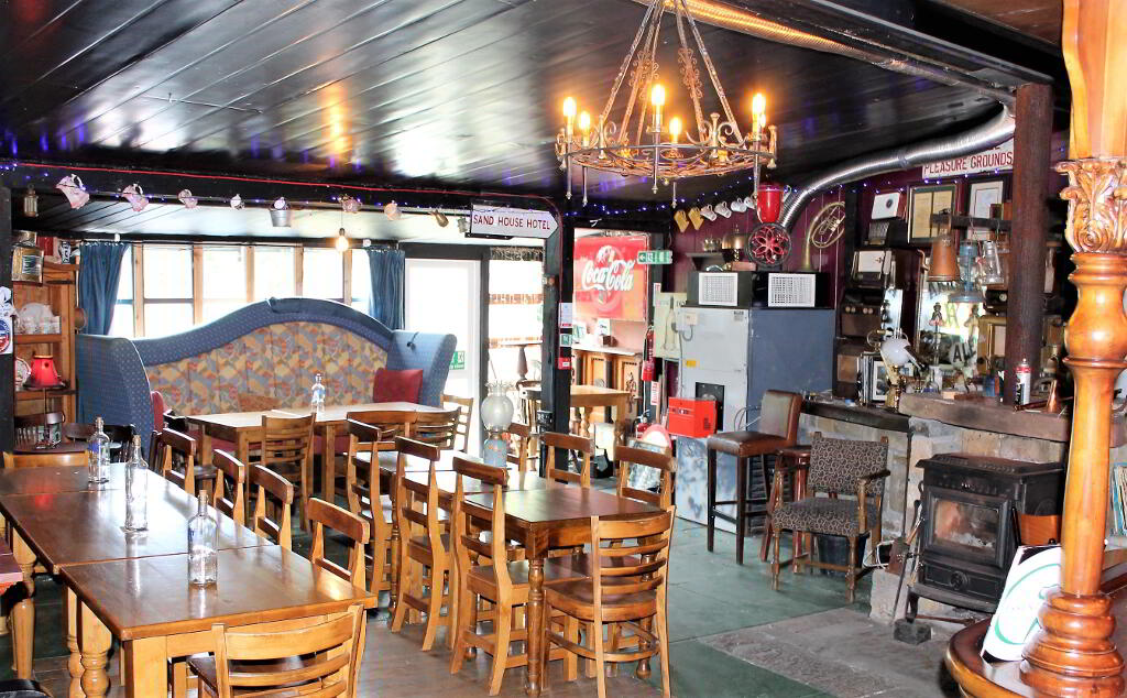 Moving right to left is another Lounge and The Rock Bar ( 49.3 x 31.7 ) with full bar facilities. The name derives from the fact that part of the bar is hewn into the rock and it's the perfect natural cellar for the Guinness and beer barrels. Two of the many features include the store with a wide range of memorabilia including two authentic Titanic Port Holes and a functioning Queen Victoria Organ. An 18 man ( or woman ) rowing boat has been turned into a full length table. The Rock Bar is serviced by a kitchen with a serving hatch and storage area measuring 25.4 x 20.6. Kitchen is kitted with a 6 ring gas cooker, industrial hot plate, double chipper, hot and cold water preparation facilities plus a range of fridges. Rear access is provided.